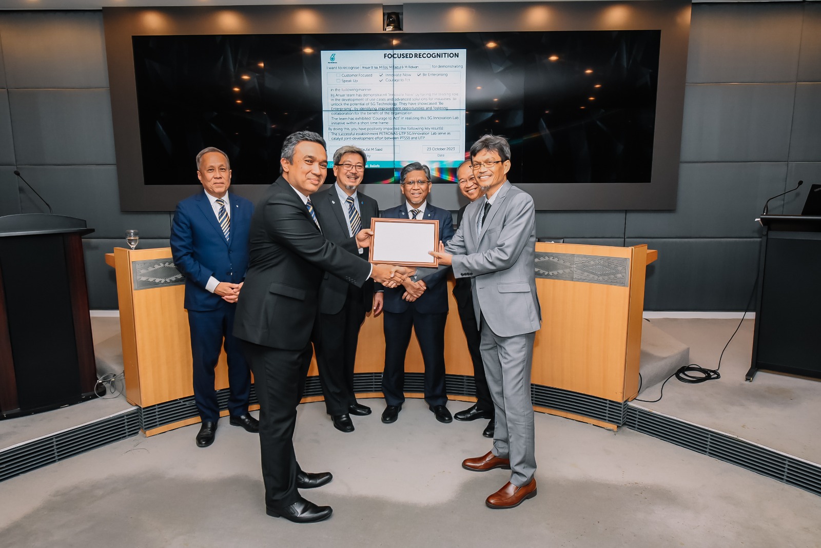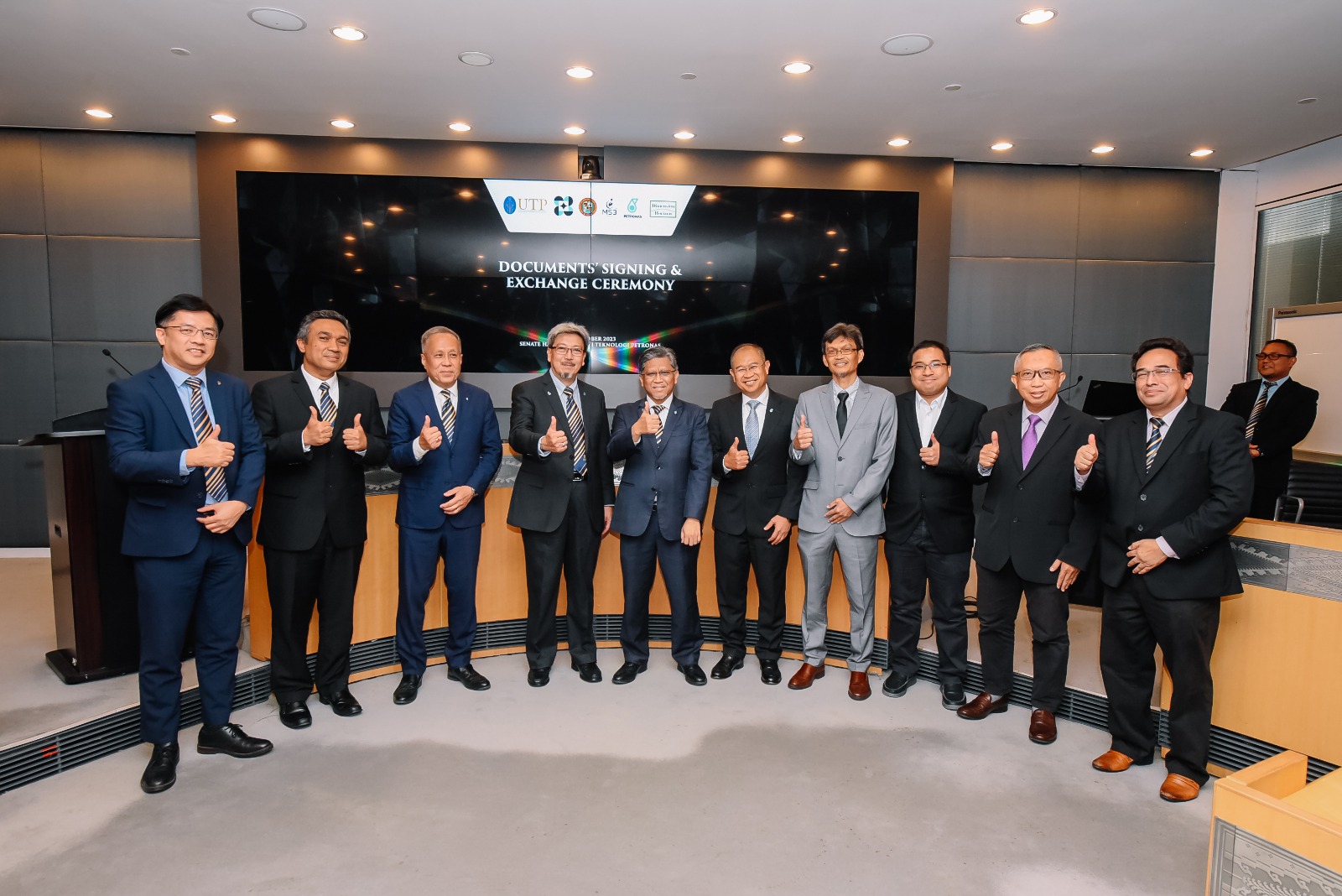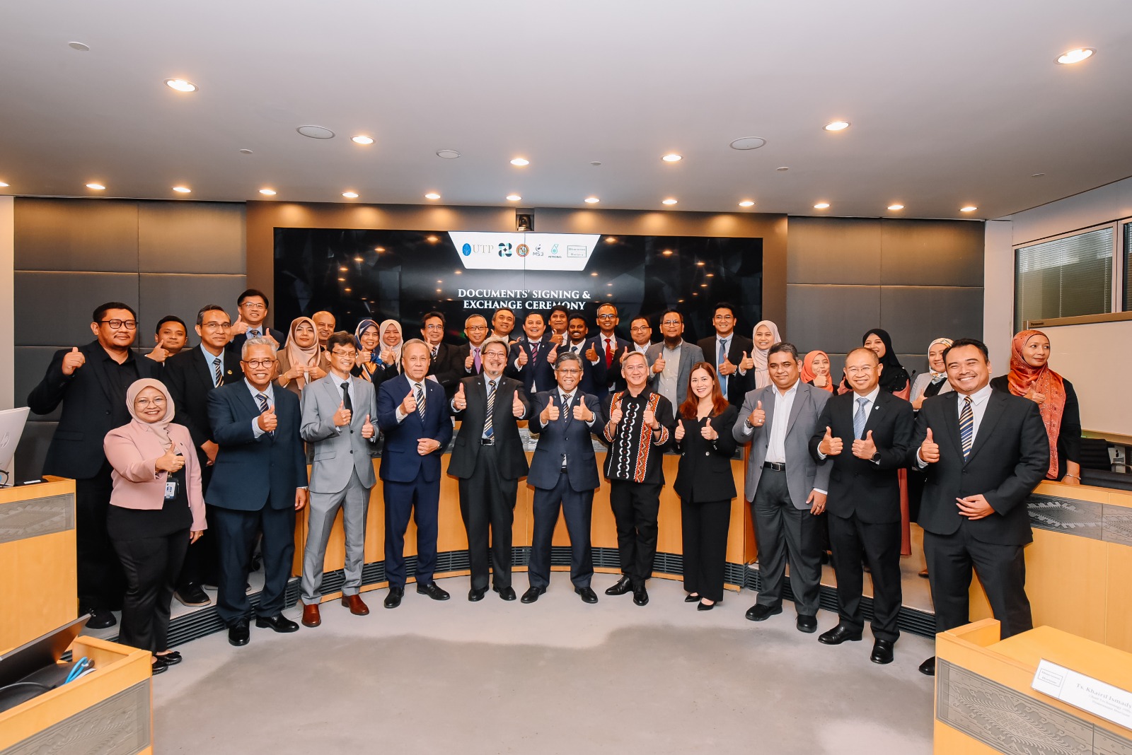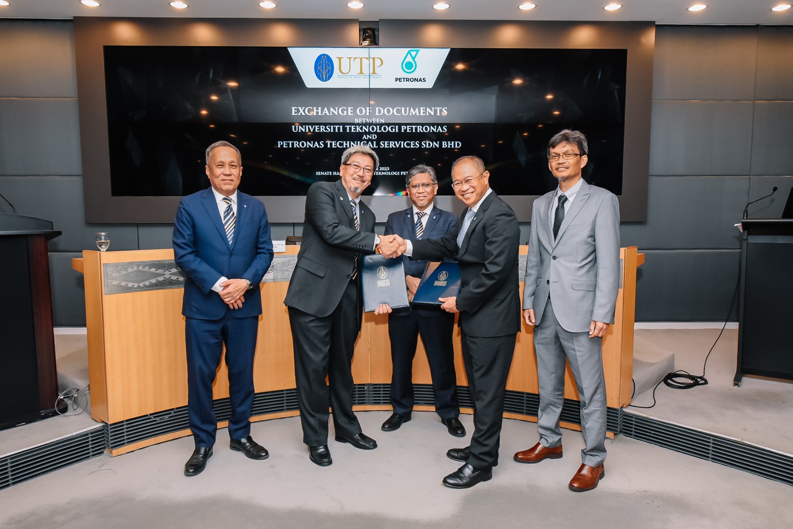 UTP and PETRONAS Technical Services Sdn Bhd formalized their collaboration through a Memorandum of Understanding, marked by an official signing and document exchange ceremony. This partnership reflects a shared commitment to advancing innovation, research, and technical excellence.